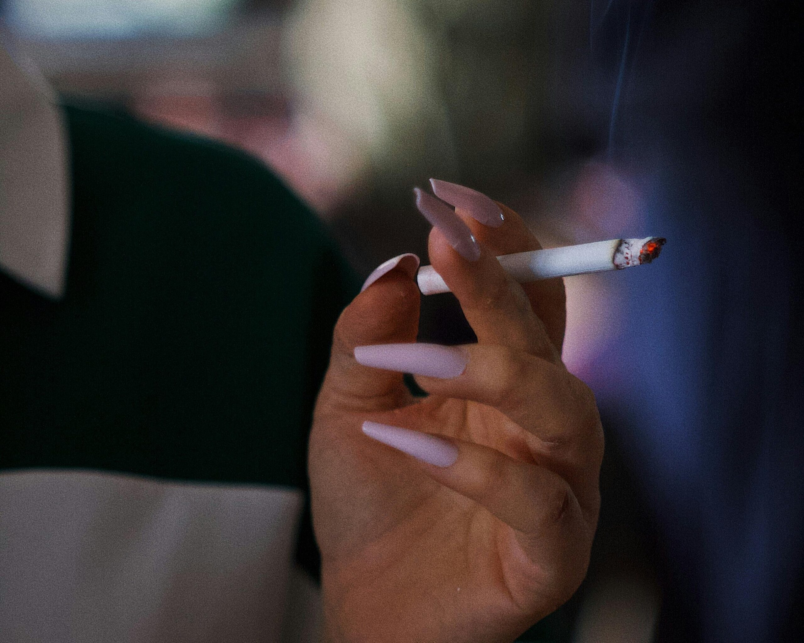 Still in the car, she took a long drag out of the cigarette I offered her, staining it with what little lipstick she had on.